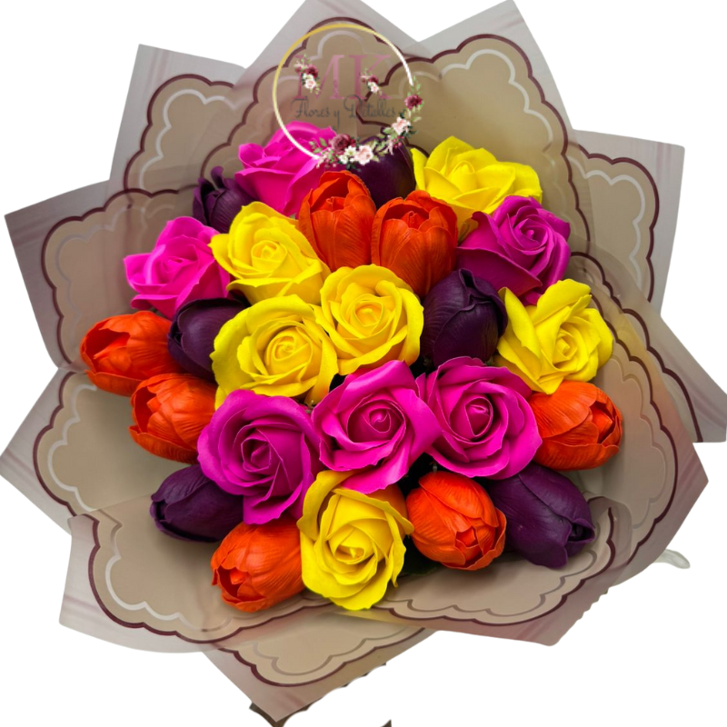 Bouquet de 25 Rosas y Tulipanes Eternos Primaveral