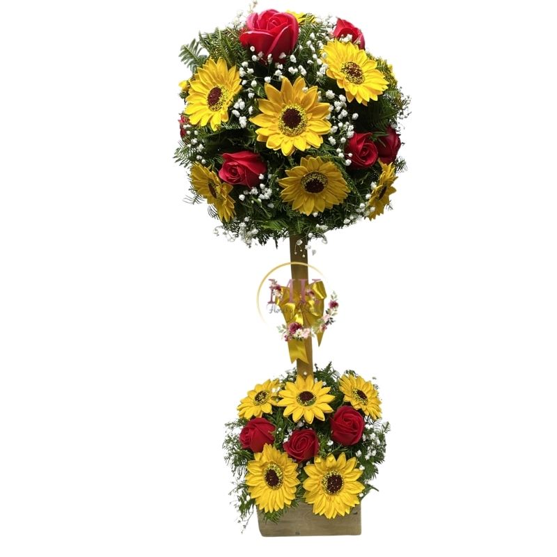 Arbolito de Girasoles y Rosas Eternas Rojas