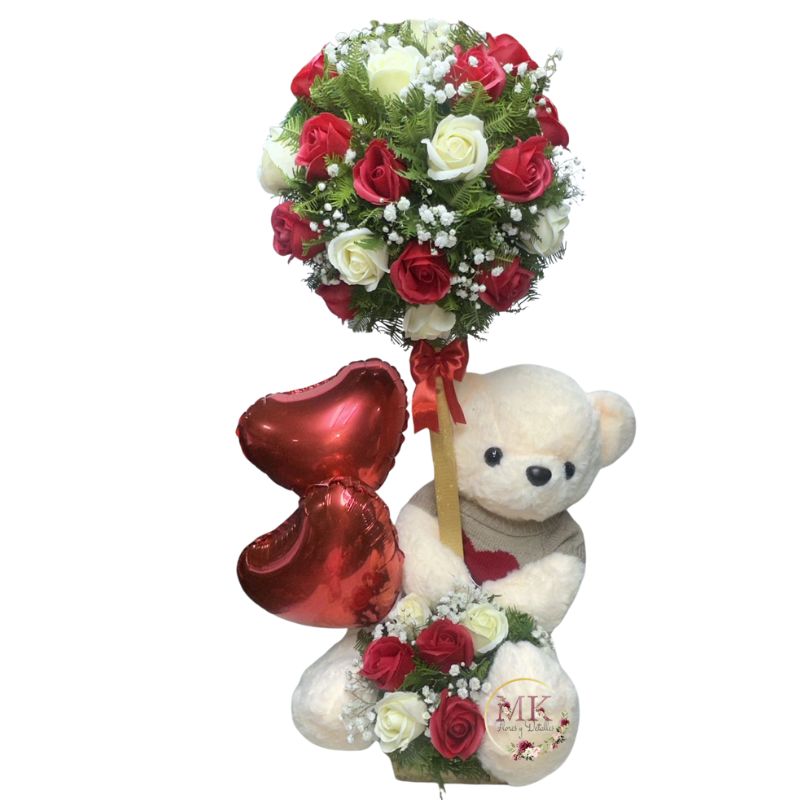Arbolito de Rosas Eternas, Peluche 55cm y Globos