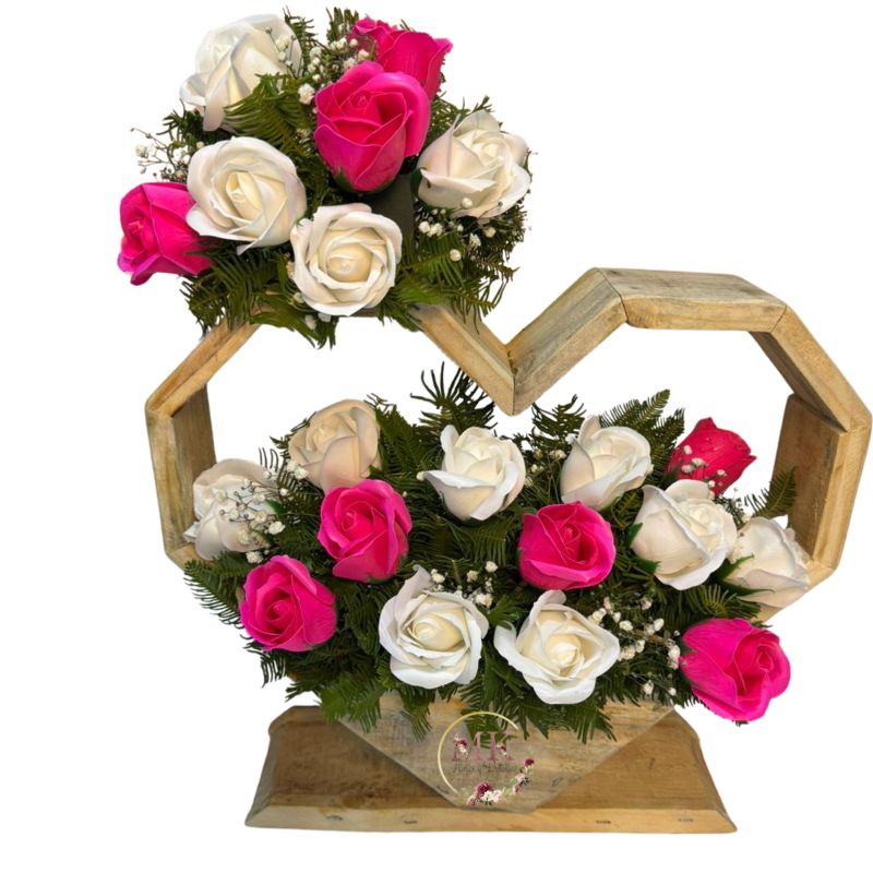 Base Corazón de Rosas Eternas Blancas y Fucsias