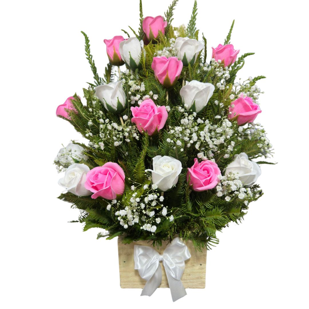 Base de 18 Rosas Blancas y Rosadas Eternas