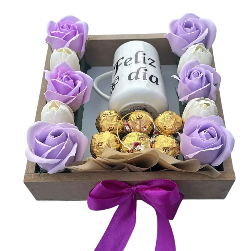 Base de Rosas y Tulipanes Eternos, Taza y Bombones