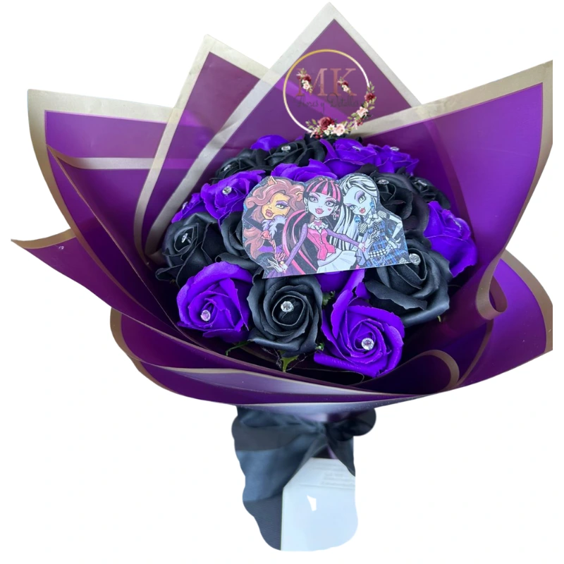 Bouquet 25 Rosas Moradas y Negras Eternas