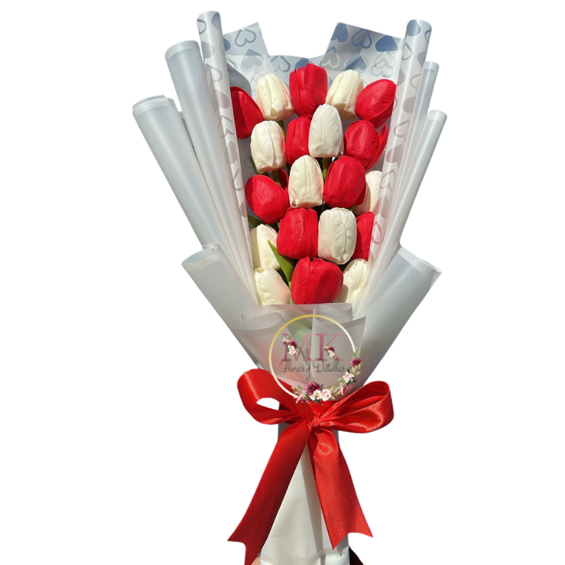 Bouquet de Tulipanes Rojos y Blancos Eternos