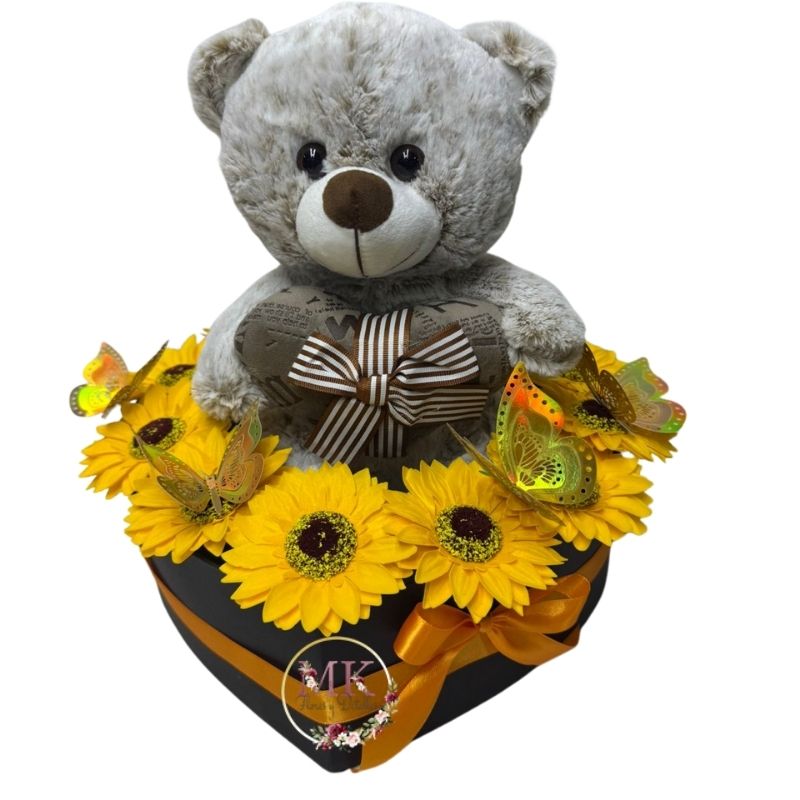 Box Corazón de Girasoles Eternos y Oso Peluche 28cm