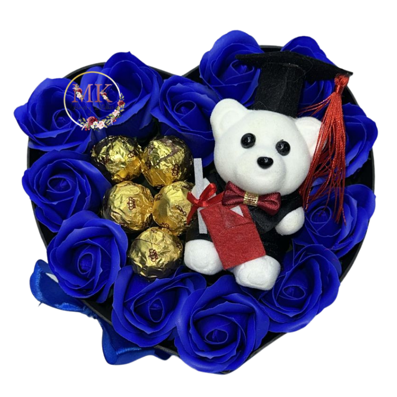 Box Corazón de Graduación con Rosas eternas, Bombones y Peluchito