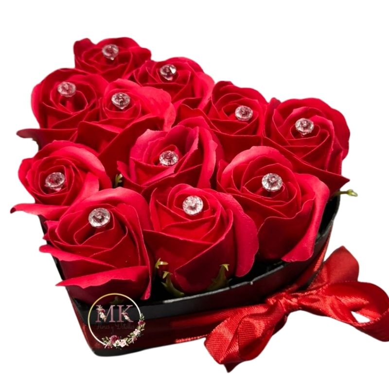 Box Corazón de Rosas Eternas Rojas con Brillantes