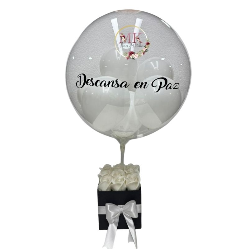 Box Cuadrado de 12 Rosas Blancas Eternas y Globo Burbuja