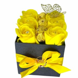 Box Cuadrado Rosas Eternas Amarillas y 3 Bombones