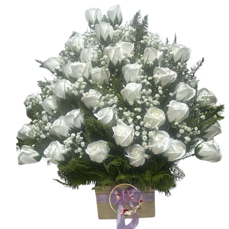 Canasta Condolencias de 30 Rosas Eternas Blancas