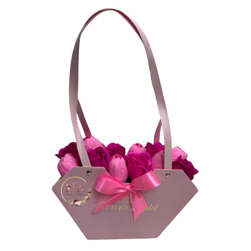 Cartera Hexagonal de Tulipanes y Rosas Eternas Fucsia