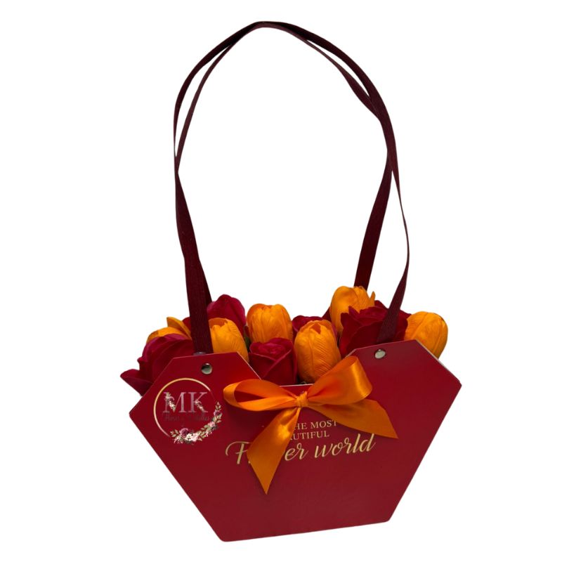 Cartera Hexagonal de Tulipanes y Rosas Eternas Rojas y Naranjas