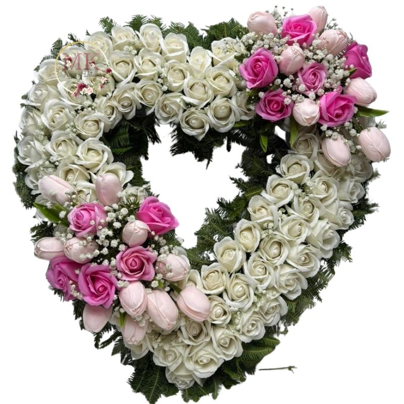 Corona Corazón de Condolencias de 100 Rosas Eternas, Flores Rosadas y Atril