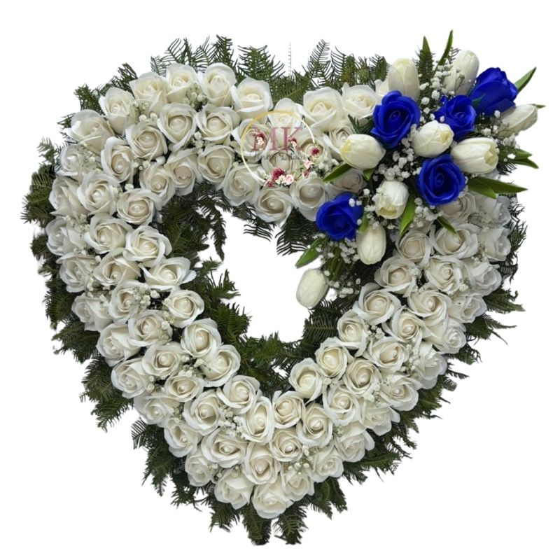 Corona Corazón de Condolencias de 100 Rosas Eternas, Flores y Atril