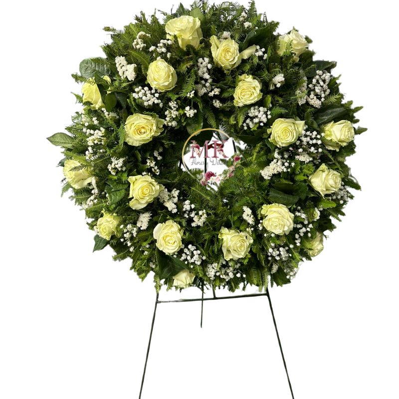 Corona de Condolencias 18 Rosas Blancas con Atril