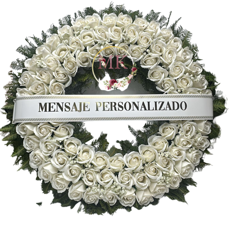 Corona Condolencias de 100 Rosas Eternas con Cinta Personalizada y Atril