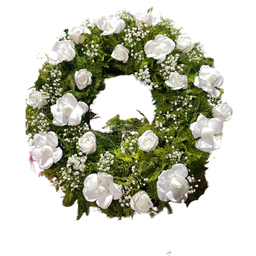Corona Mediana de Rosas Blancas Eternas con Atril