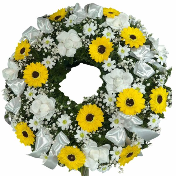 Corona Mediana de Rosas y Girasoles Eternos con Atril