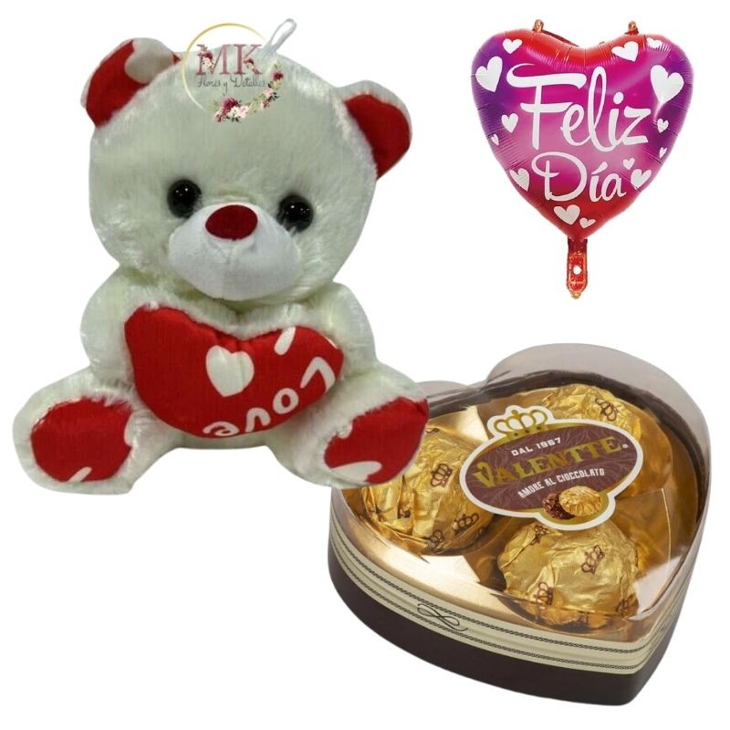Peluche Oso 20cm, Bombones Corazón 37.5grs y Globo